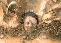Chão lamacento, aquele onde aterrou.